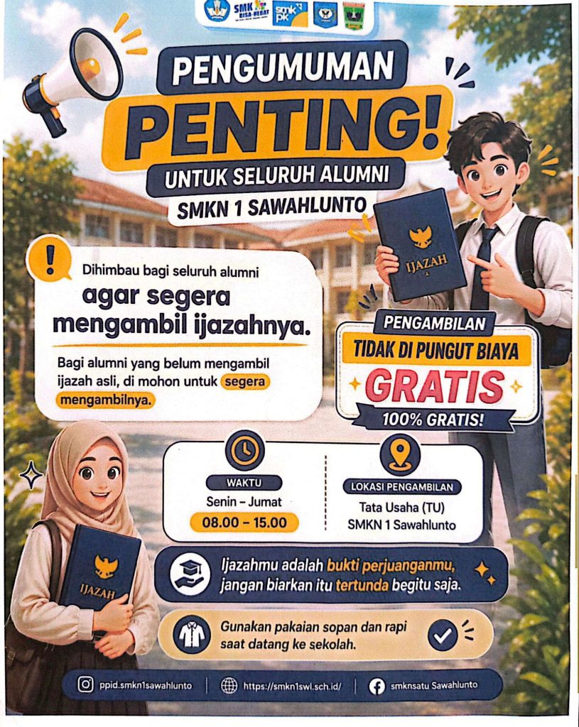 Dalam himbauan yang disampaikan, seluruh alumni yang belum mengambil ijazah diharapkan untuk segera mengambil dokumen penting tersebut di sekolah masing-masing. Ijazah merupakan dokumen resmi yang sangat dibutuhkan, baik untuk melanjutkan pendidikan maupun keperluan dunia kerja.
