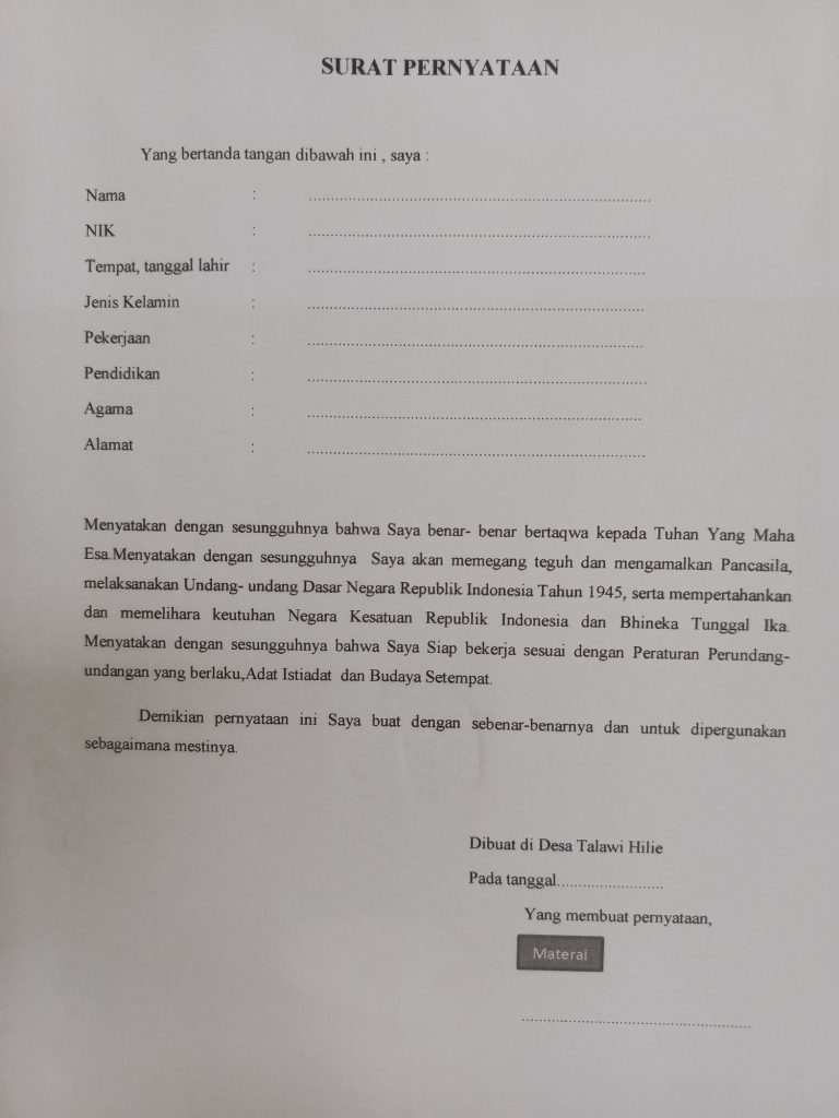 Pemerintah Desa Talawi Hilie mengimbau kepada seluruh masyarakat yang memenuhi persyaratan dan berminat untuk mengabdi sebagai perangkat desa agar dapat memanfaatkan kesempatan ini dengan sebaik-baiknya serta mengikuti seluruh tahapan seleksi sesuai jadwal yang telah ditentukan.
