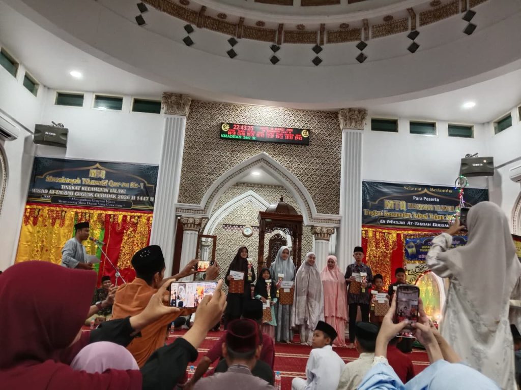 Talawi Hilie, 15 Maret 2026 – Desa Talawi Hilie turut berpartisipasi dalam Lomba Musabaqah Tilawatil Qur’an (MTQ) se-Kecamatan Talawi yang diselenggarakan oleh Panitia MTQ Masjid At-Taubah Guguak Cubadak. Kegiatan berlangsung selama empat hari, mulai 11 hingga 14 Maret 2026, dan diikuti oleh seluruh desa yang berada di wilayah Kecamatan Talawi.
